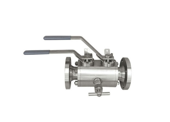 Het dubbele Blok en de AftapKogelkleppen worden gepoogd een dubbele barrière te krijgen op het door buizen leiden, en de vloeistof af te tappen die tussen de twee ballen van een specifieke afvoerkanaallijn wordt opgesloten. De lichaamsbouw kan of smeedstuk of centrifugaalafgietsel zijn. Brede waaier van materialen: koolstofstaal, austenitic of martensitic SS, duplex-superduplex-duplex SS, op nikkel-gebaseerde legeringen.